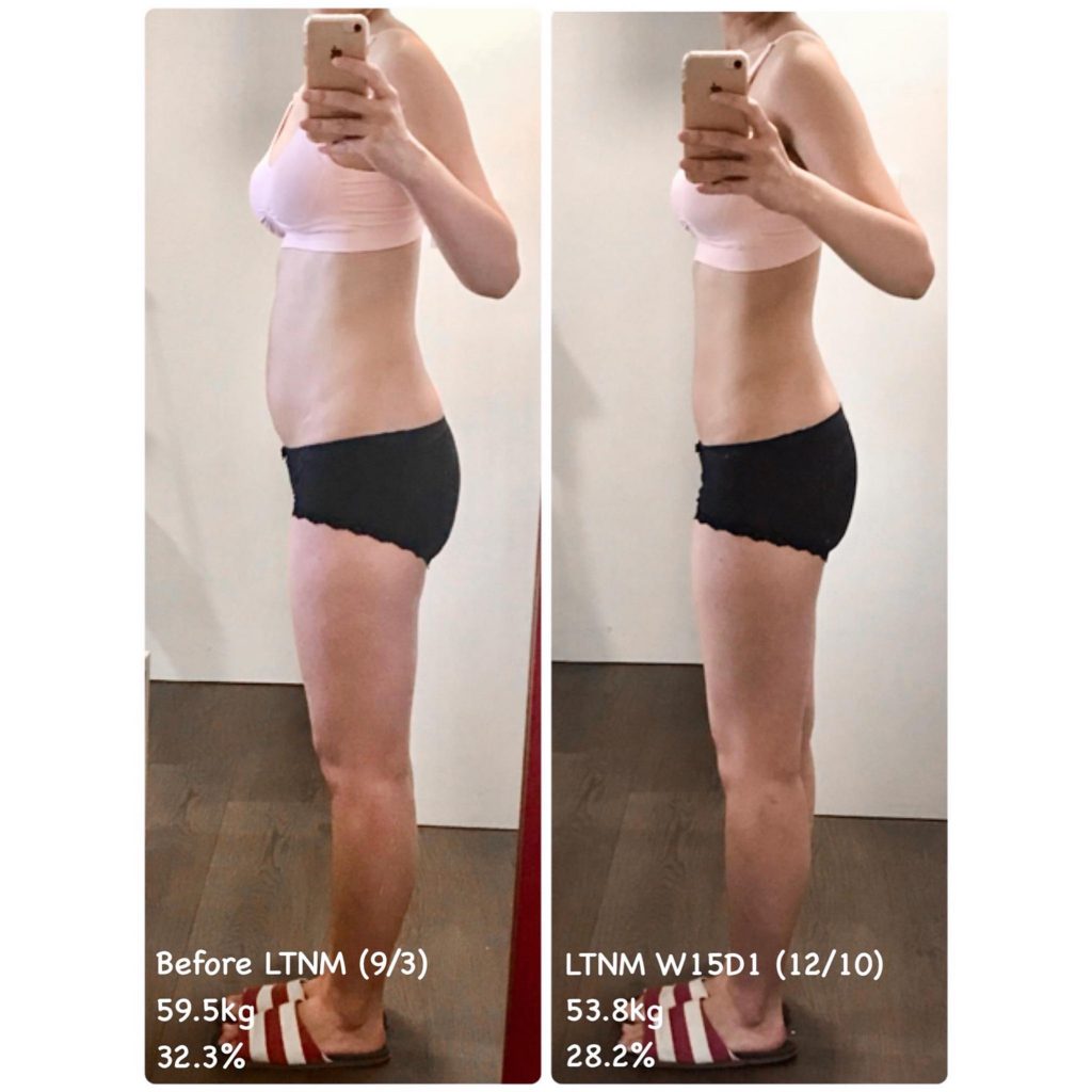 『 執行Love the New Me計畫的這段時間(9/3-12/10) 體重降了近6kg,體脂降了4%,肌肉增加2%,就連內臟脂肪也從4%降為2%,身體年齡從34歲降到27歲。這些都是在執行計畫前完全沒想到的。