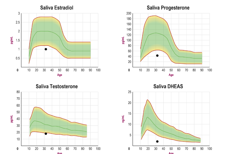 這個荷爾蒙測試可以驗出不少激素,我買的kit是跟肥胖相關,或影響減脂的幾個重要荷爾蒙,有雌激素、雄激素、可體松、甲狀腺激素、黃體素等等。檢驗方式很簡單,就是按照說明指示,使用kit裡面附上的唾液蒐集小罐子,還有血液樣本蒐集卡片,在一天之內不同時間點蒐集好唾液與血液,再把這些樣本都寄回實驗室,過了三到五天就能在email裡收到檢驗報告。